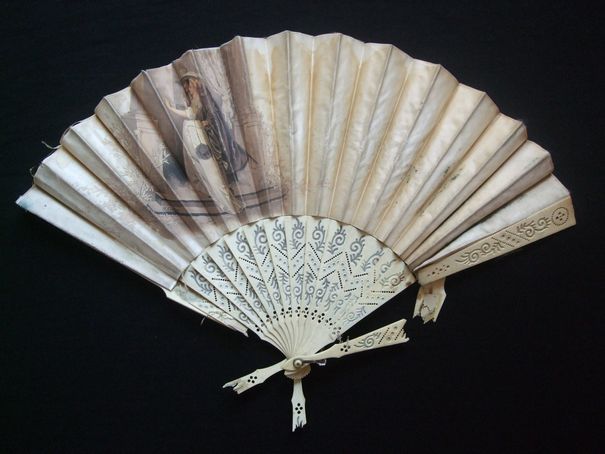 de sa bien-aimée, vêtue de satin blanc, un éventail