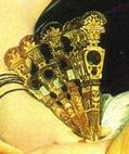 d'elle rappelle son rang. Et l'éventail renforce le symbole royal.