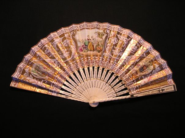 Monture à 20 brins en os repercé, doré, panaches torsadés.